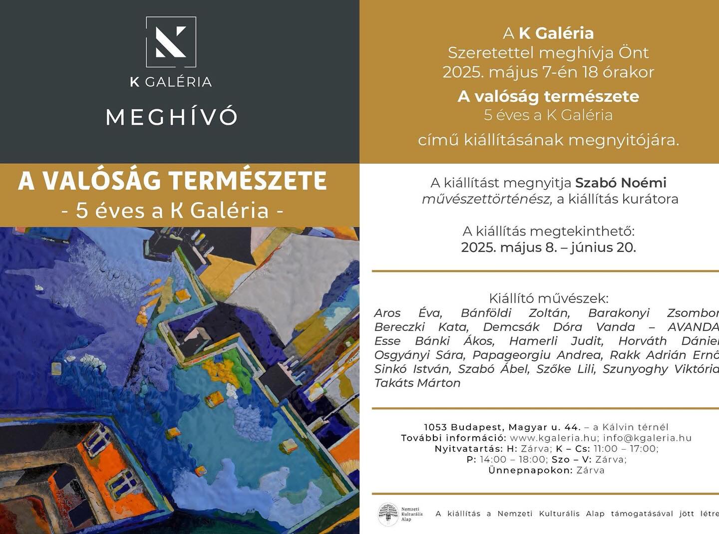 A VALÓSÁG TERMÉSZETE – 5 ÉVES A K GALÉRIA című kiállításának megnyitójára.